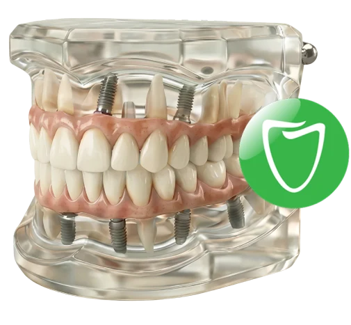 Reposição definitiva de dentes perdidos por meio de pinos de titânio, que devolvem a função mastigatória, a estética do sorriso e a qualidade de vida.